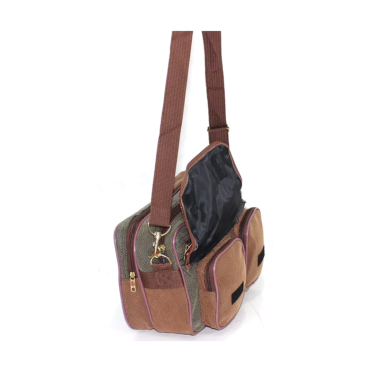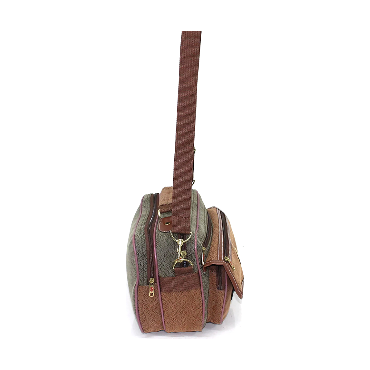 Upgrade your everyday carry with this Khaki Brown faux suede satchel travel bag. Designed for work, school, or travel, it features a large main compartment, multiple zippered pockets, and a padded top carry handle for comfort. The adjustable shoulder strap (up to 43.5") allows for crossbody or messenger-style wear. Gold-colored hardware adds a touch of elegance, while unique shade variations highlight the luxurious faux suede texture.